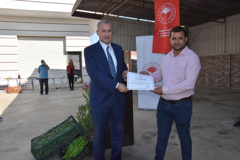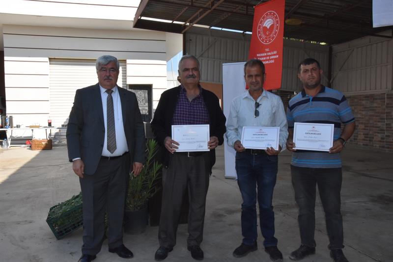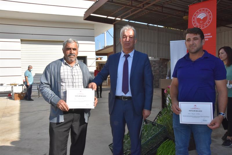 Ayrıca 2-4 Kasım tarihleri arasında, İlimiz de üretilen BİBERDE PESTİSİT KALINTISI VE KARANTİNAYA TABİİ ORGANİZMALARIN AZALTILMASINA YÖNELİK, İl ve İlçe Müdürlüğümüz teknik elemanları ve Akdeniz Ziraat Odası danışmanları ile beraber biber yetiştiriciliği, hastalıkları, zararlılar iyi tarım uygulamaları ve biyolojik ve biyoteknik mücadelesi ve doğru ilaçlama teknikleri ve pestisit kalıntıları ile ilgili eğitimler verildi, eğitime katılan biber üreticilerine; katılım belgeleri takdim edildi. İl Müdürü Arif Abalı,eğitim alan kursiyerler ve bölge üreticileri eşliğinde biber seralarında tespit çalışmaları yaptı.